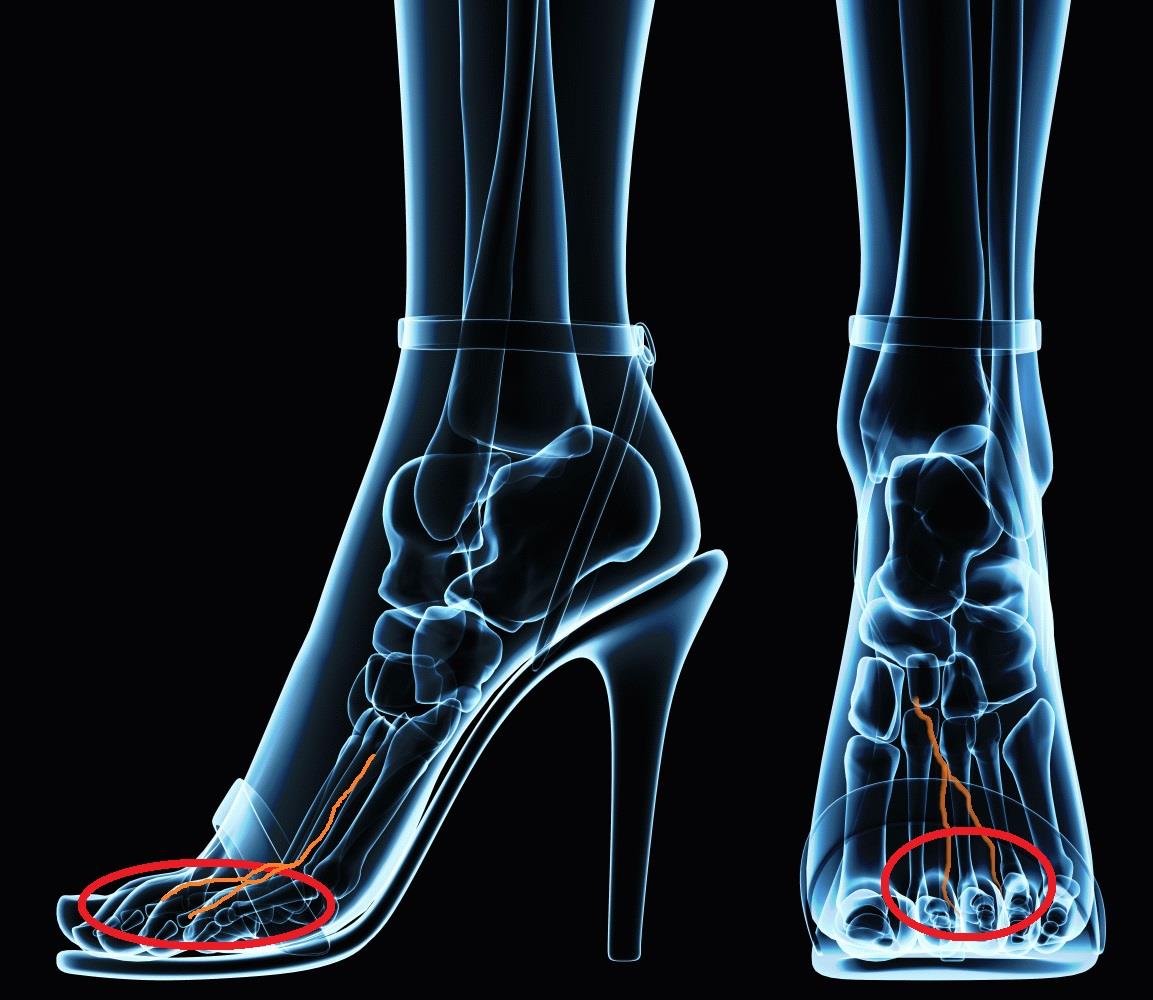 zwischen den Mittelfußknochen, zumeist ist der 3. oder 4. Zehenzwischenraum betroffen. Dort bildet sich durch eine chronische Reizung ein Neurom, das im MRT gesehen werden kann.