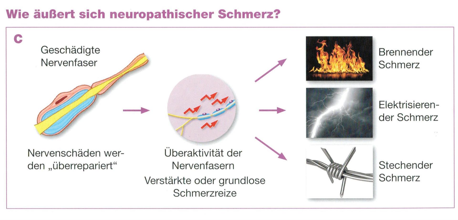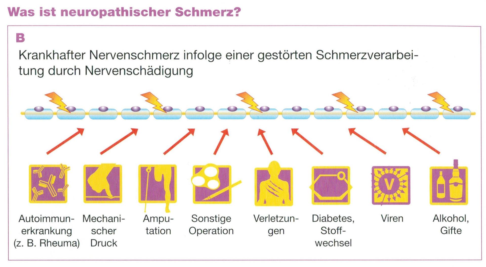 Eine Polyneuropathie ist eine Schädigung der kleinen Nerven, sozusagen die "Arthrose der Nerven". Als erstes wird die Isolierung der Nerven geschädigt, darum könne Impuls von z.B. Gefühlsfasern aus Schmerzfasern überspringen. Auch kommt es zu Funktionsstörungen der Nerven (Kabelbrüche, Wackelkontakte).